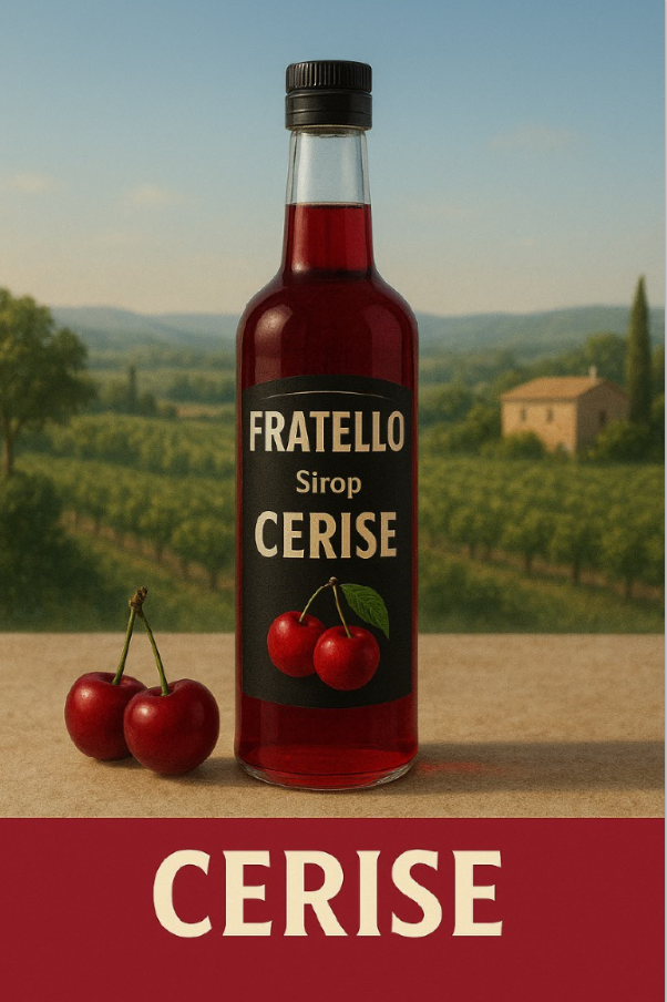 Le sirop Fratello Cerise capture la richesse des fruits mûrs gorgés de soleil, cueillis à parfaite maturité en Provence.